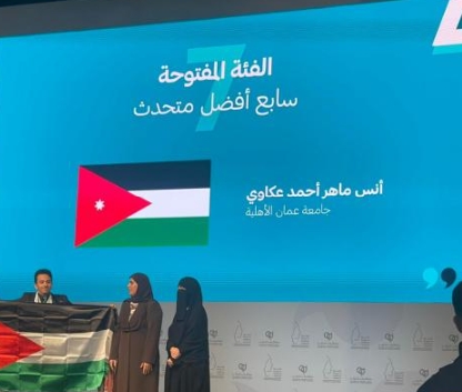 طالب عمان الأهلية أنس عكاوي يحصد المركز السابع في بالبطولة الدولية لمناظرات الجامعات
