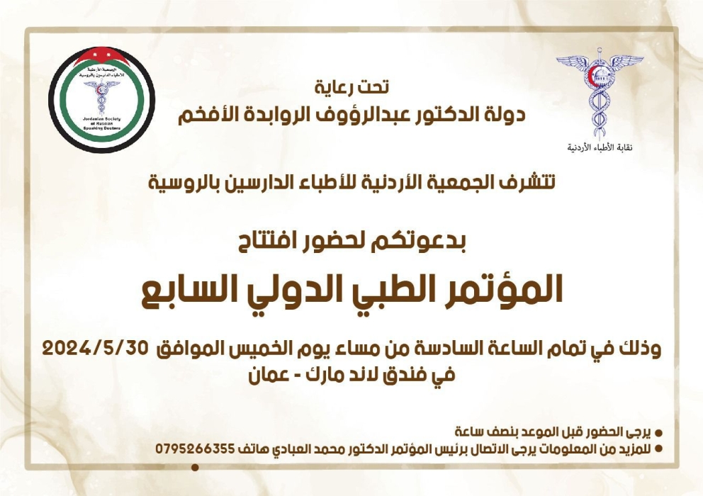 جمعية الاطباء الدارسين بالروسية تعقد المؤتمر الطبي الدولي السابع في عمان