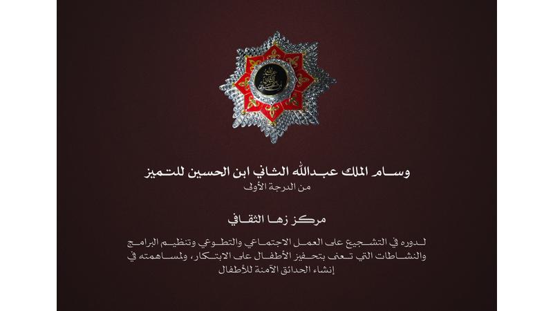 الأميرة عالية الطباع تهنئ "زها الثقافي" لحصوله على وسام الملك عبدالله الثاني للتميز