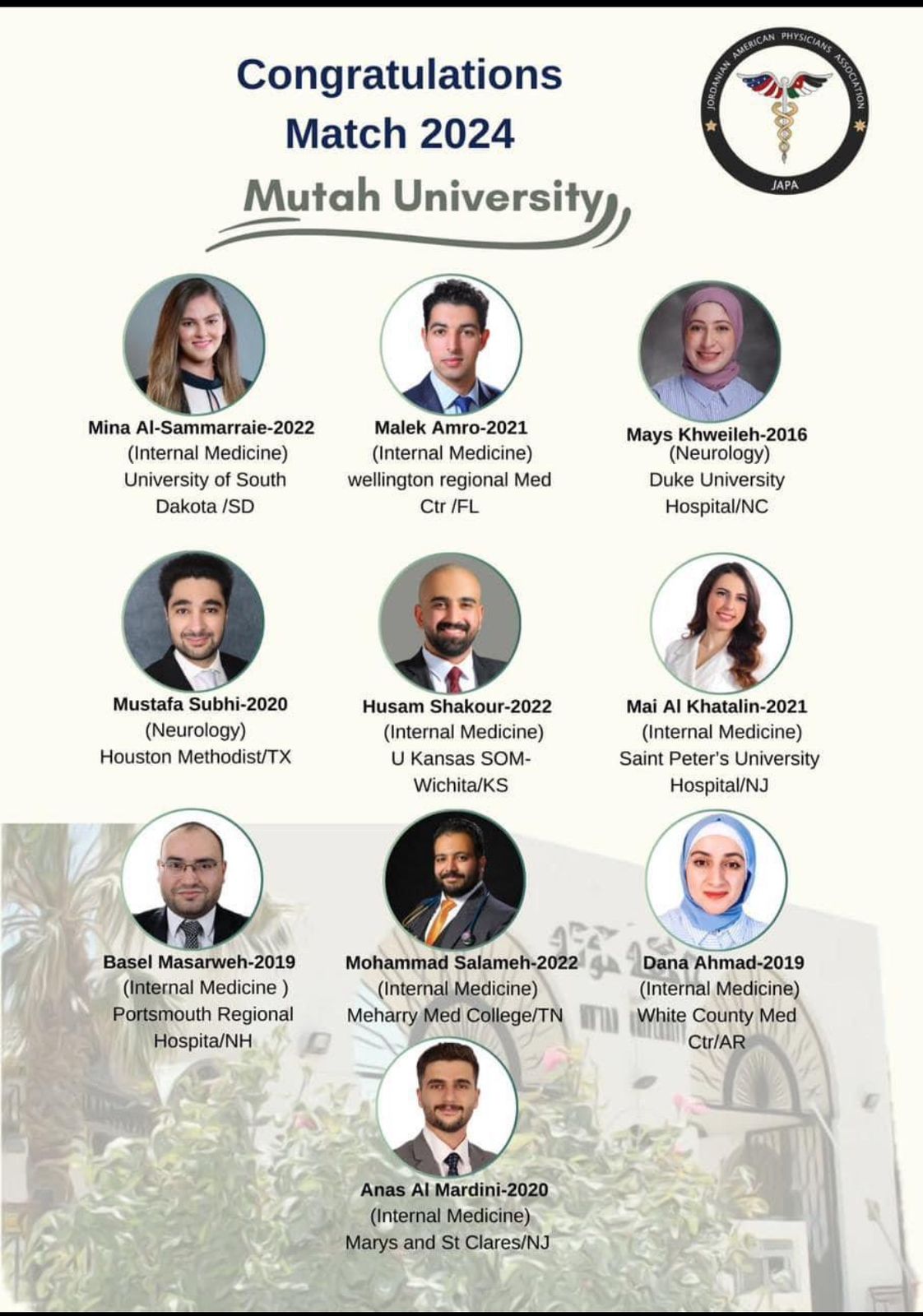 10 من خريجي كليه الطب في جامعة "مؤتة " يحصلون على برامج الإقامة في الولايات المتحدة الامريكية
