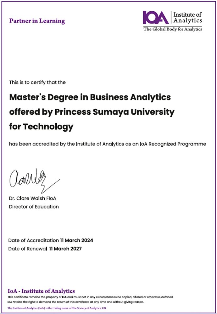 كلية تكنولوجيا الأعمال في جامعة الأميرة سمية تحقق الاعتماد الدولي