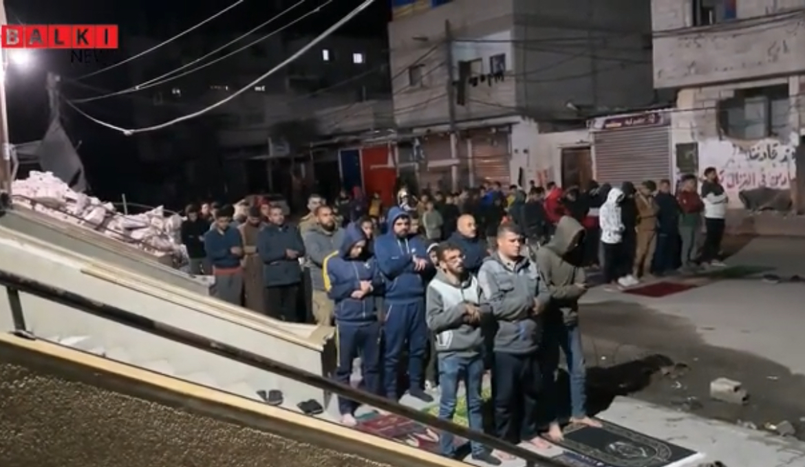عاجل | عدسة بلكي نيوز في غزة : شاهد مصلون يقيمون صلاة التراويح على انقاض مسجد الهدى والذي تم قصفه سابقا من قبل قوات الاحتلال