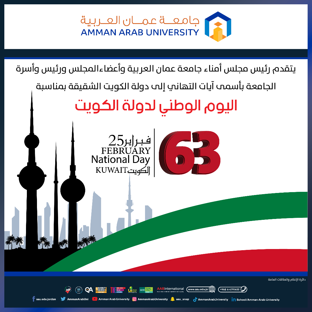 جامعة عمان العربية تهنىء بمناسبة اليوم الوطني لدولة الكويت