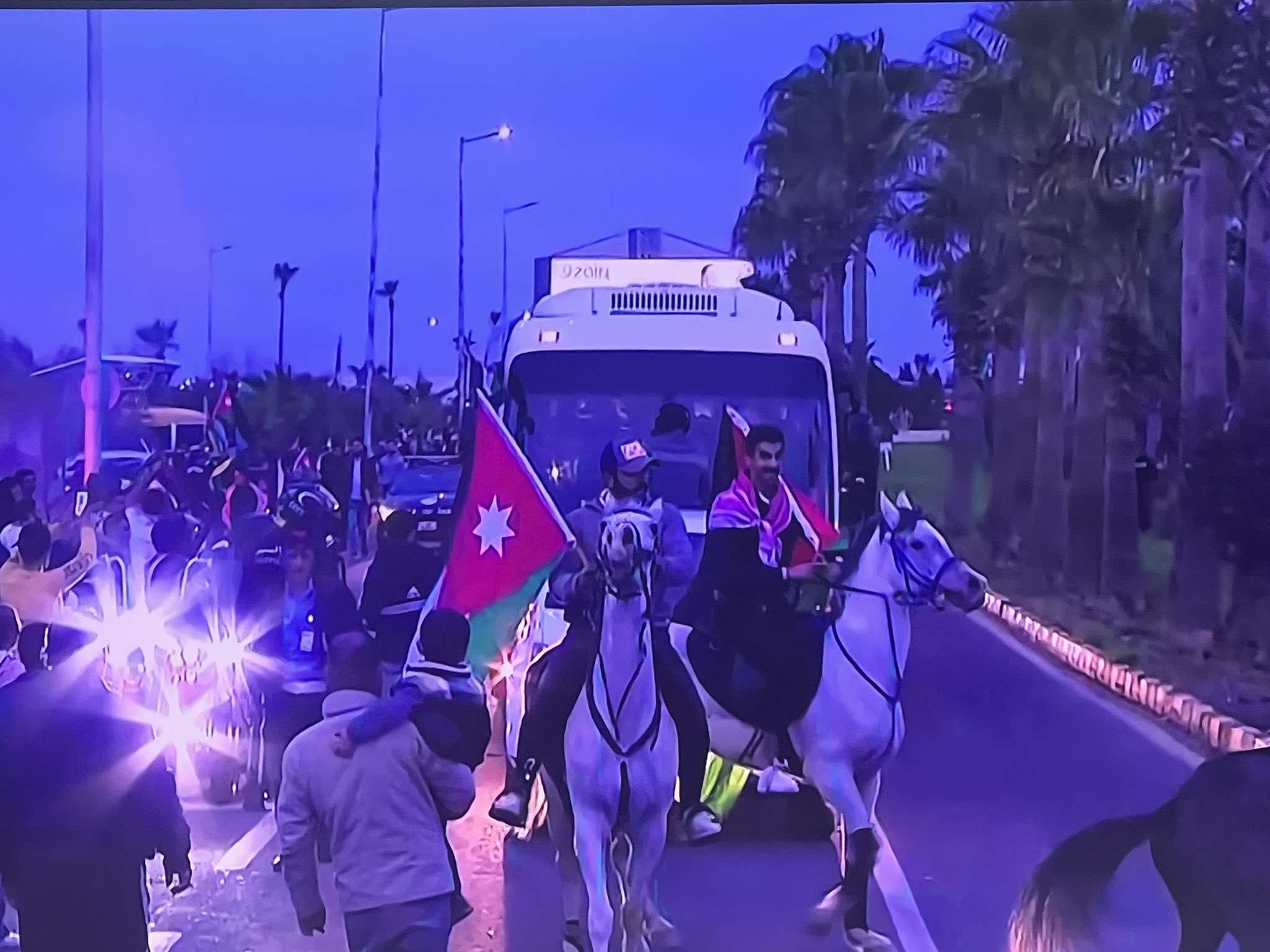 شاهد بالصور .. خيول جماهير النشامى امام حافلة النشام