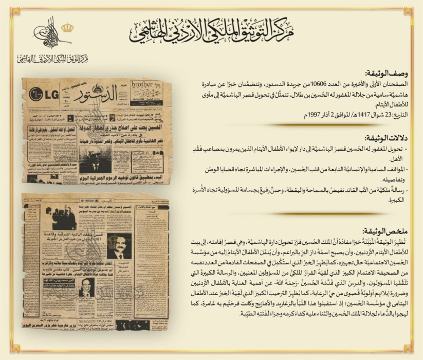 نشر وثيقة بمناسبة ذكرى وفاة الملك الحسين بن طلال
