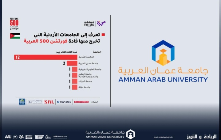 عمان العربية" في المركز الثاني على مستوى الجامعات الأردنية في تصنيف فورتشن 500