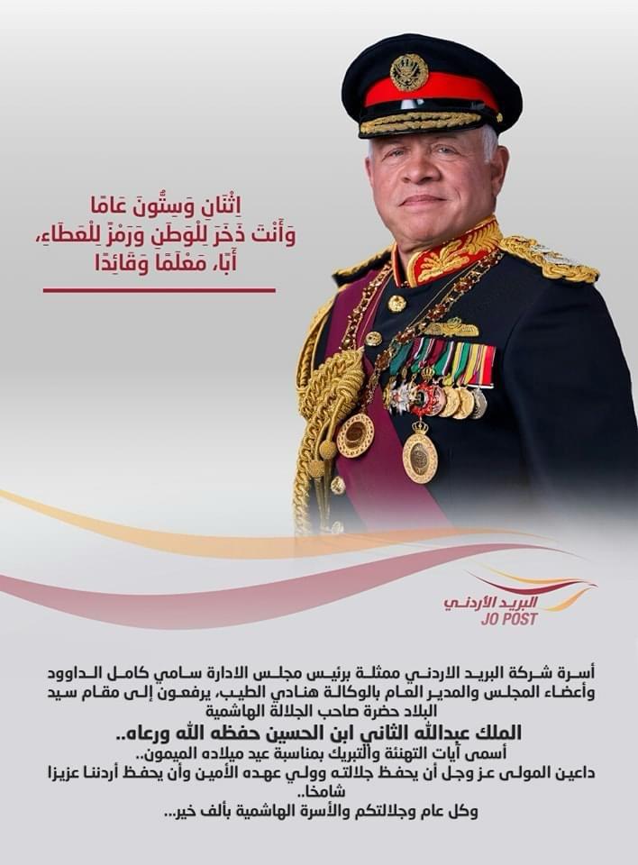البريد الاردني تهنئ بعيد ميلاد الملك