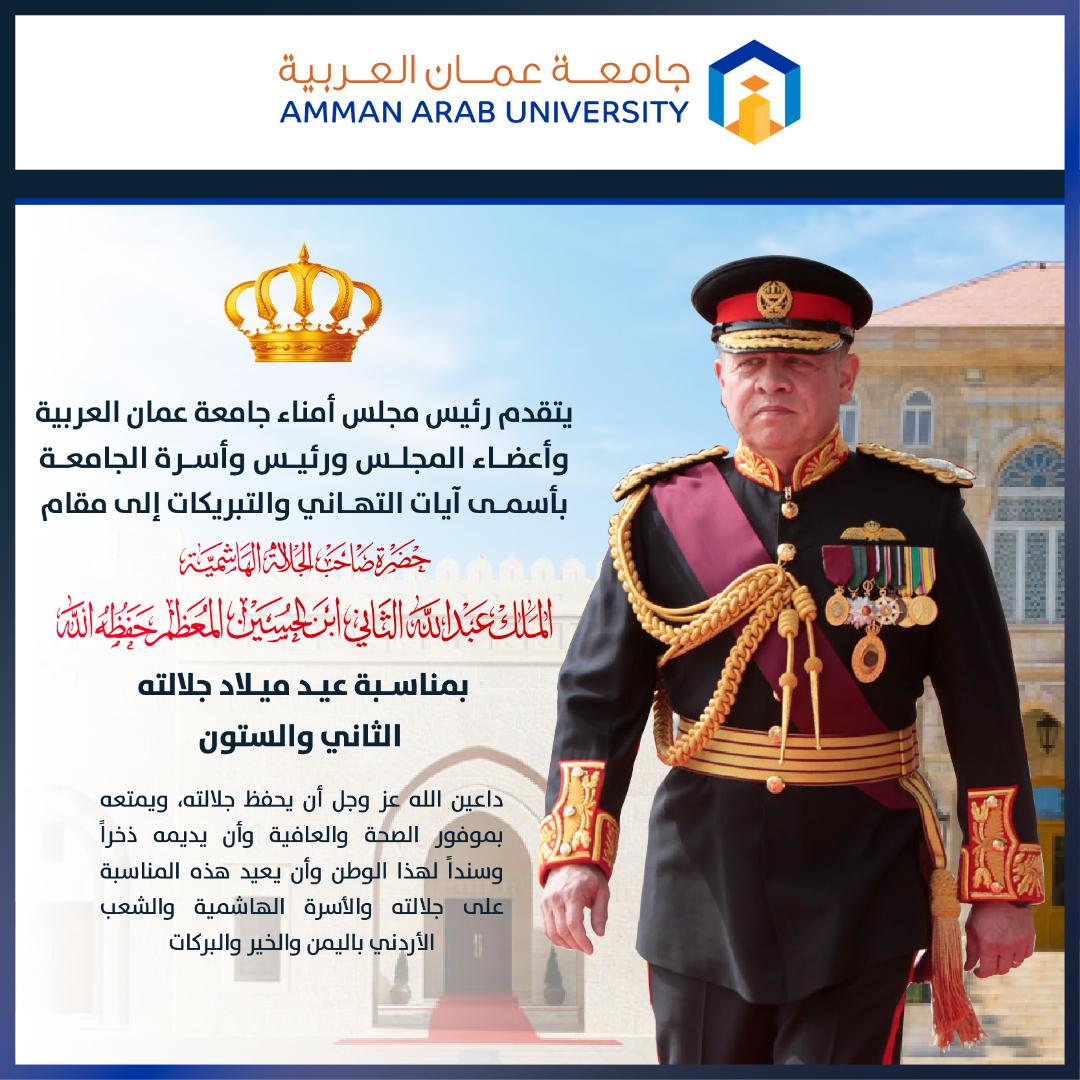 أسرة جامعة عمان العربية تهنئ في عيد ميلاد الملك