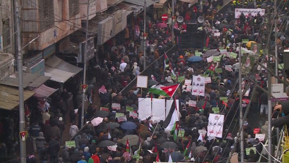 الأردن | رغم سوء الأحوال الجوية ….مسيرات حاشدة بعدة محافظات تطالب بوقف الحرب على غزة