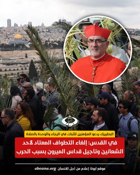 رسالة من الكاردينال بييرباتيستا بطريرك القدس للاتين اعلن فيها القيود المفروضه بسبب الحرب
