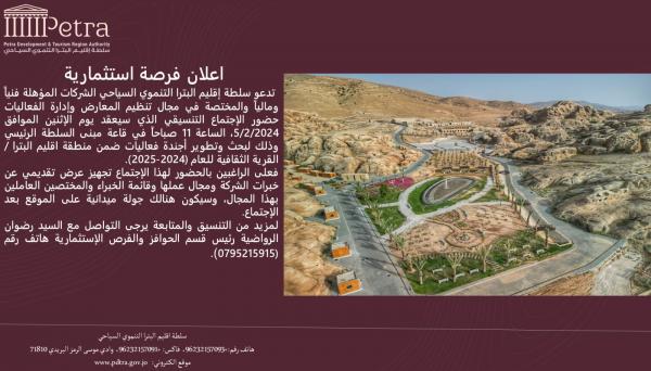 سلطة إقليمية البترا تعلن عن فرصة استثمارية