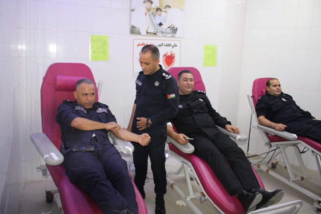 شرطة محافظة اربد تلبي نداء استغاثة للتبرع بالدم من ذوي احد المرضى بالعناية الحثيثة.