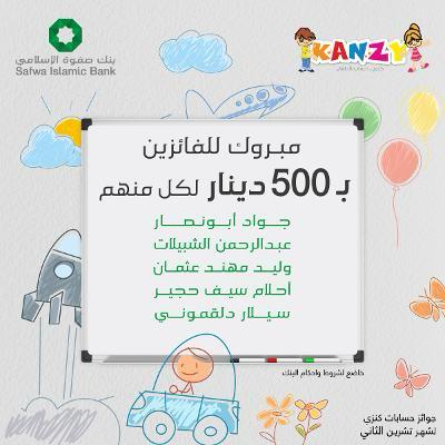 بنك صفوة الإسلامي يعلن الفائزين بجوائز حساب توفير الأطفال "كنزي" لشهر تشرين الثاني 2023