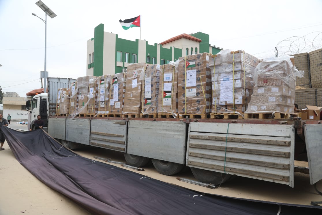 وصول قافلة المساعدات الإنسانية والإغاثية إلى المستشفى الميداني الأردني الخاص