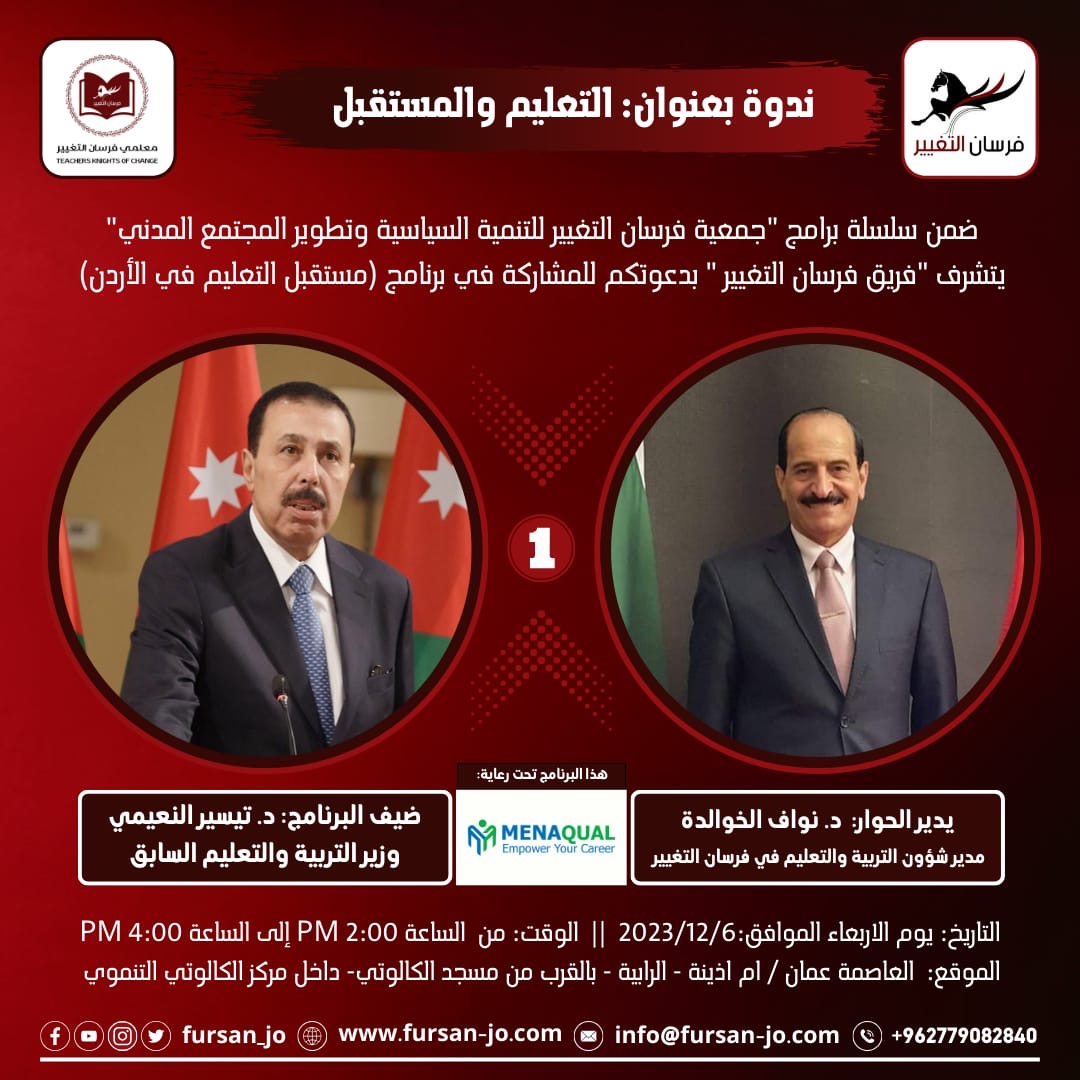 "فرسان التغيير تنظّم حوارية حول مستقبل التعليم في الأردن"