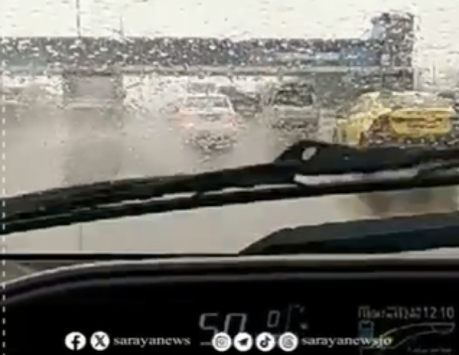 تساقط غزير للأمطار على طريق المطار