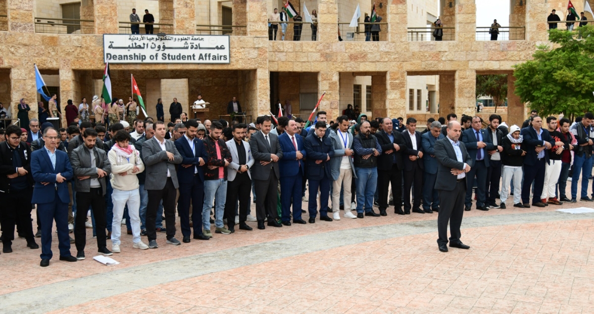 مسيرة تضامنية في جامعة العلوم والتكنولوجيا دعمًا للأشقاء في غزة