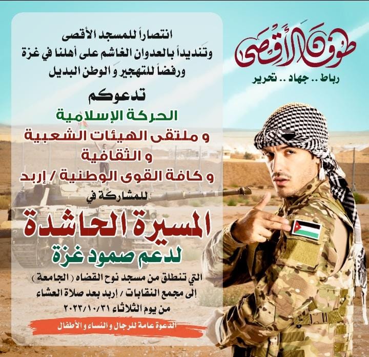 وقفة تضامنية حاشدة لدعم صمود غزة في اربد اليوم