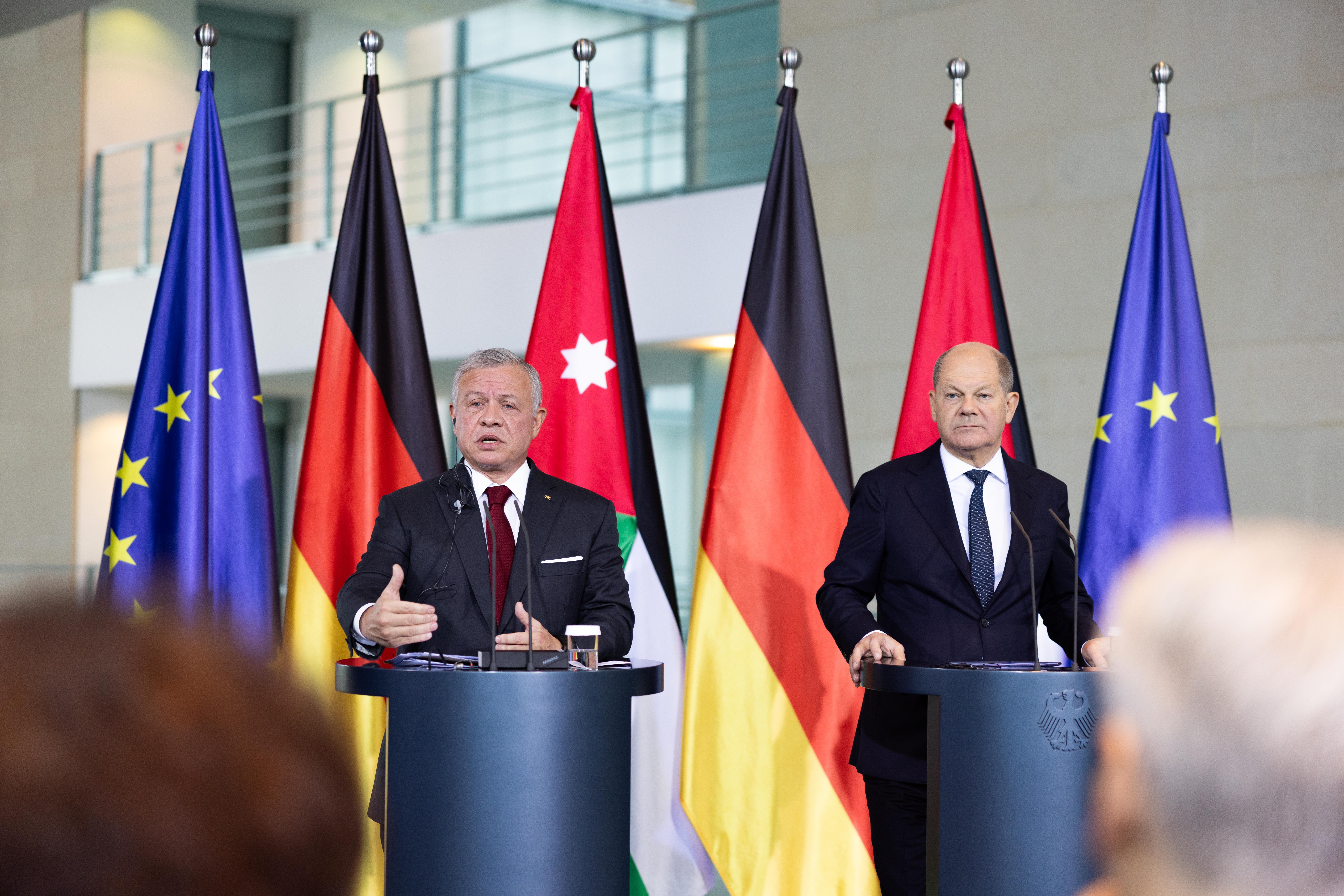 الملك لدى لقائه شولتس: لا يمكن استقبال اللاجئين في الأردن ولا في مصر وهذا خط أحمر