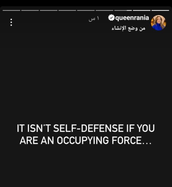 الملكة رانيا على انستغرام : “ليس دفاعا عن النفس إن كنت قوة محتلة”