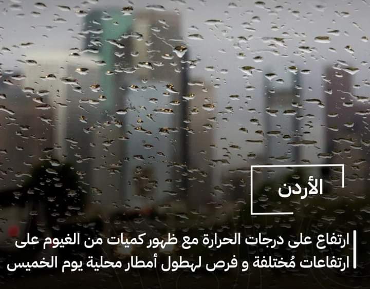الأردن | ارتفاع على درجات الحرارة مع ظهور كميات من الغيوم على ارتفاعات مُختلفة و فرص لهطول أمطار محلية يوم الخميس