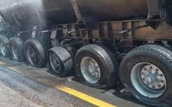احتراق اطارات مركبة شحن على طريق المفرق