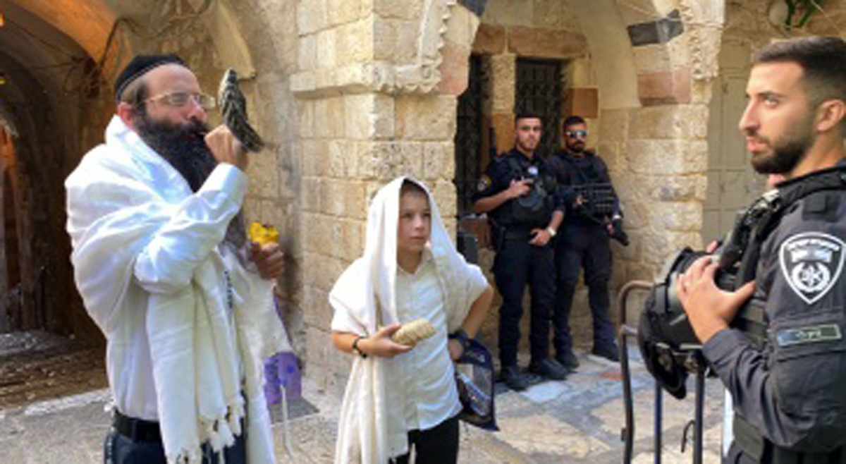 مستوطن متطرف ينفخ بالبوق على عتبات الأقصى