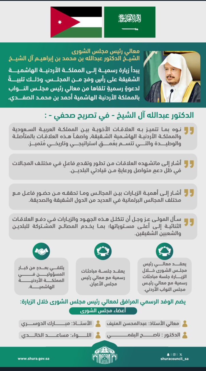 د . عبدالله آل الشيخ : العلاقات السعودية الاردنية متاصلة والوطيدة تتسم بعمق استراتيجي وتاريخي متميز