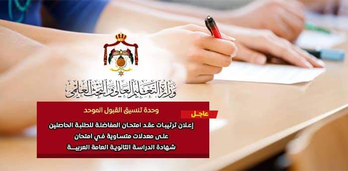 عاجل / وحدة تنسيق القبول الموحد في وزارة التعليم العالي تعلن عن موعد وترتيبات عقد امتحان المفاضلة المقرر للطلبة الأردنيين الحاصلين على معدلات متساوية في شهادة الدراسة الثانوية العامة العربية للعام الجامعي 2023-2024