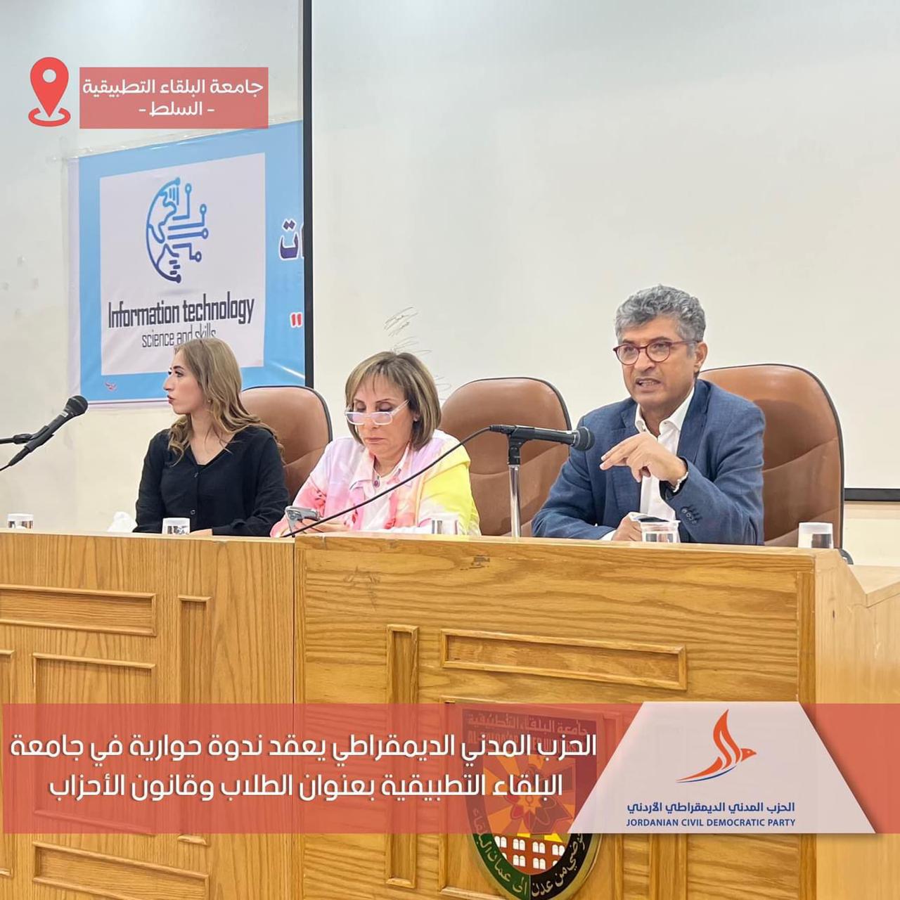 المدني الديمقراطي يعقد ندوة حوارية بجامعة البلقاء التطبيقية