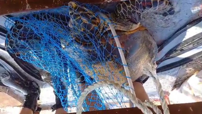 إنقاذ سلحفاة بحرية علقت بقنوات تبريد صناعية العقبة
