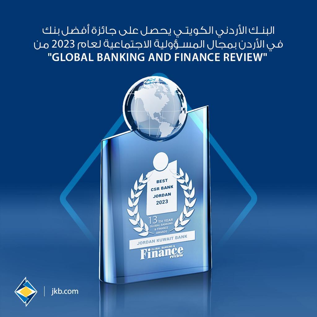 البنك الأردني الكويتي يحصل على جائزة أفضل بنك في الأردنفي مجال المسؤولية الاجتماعية لعام 2023 من "Global Banking and Finance Review "