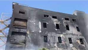 انهيار اجزاء من مصنع الاسفنج بفعل الحريق وتم عزل المبنى