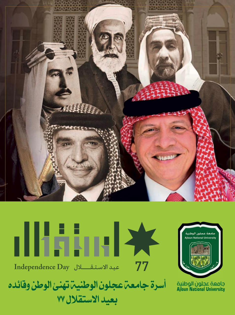 أسرة جامعة عجلون الوطنية تُهنئ بعيد الاستقلال