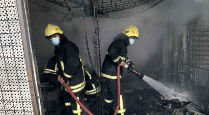 حريق مستودع البسه بالزرقاء