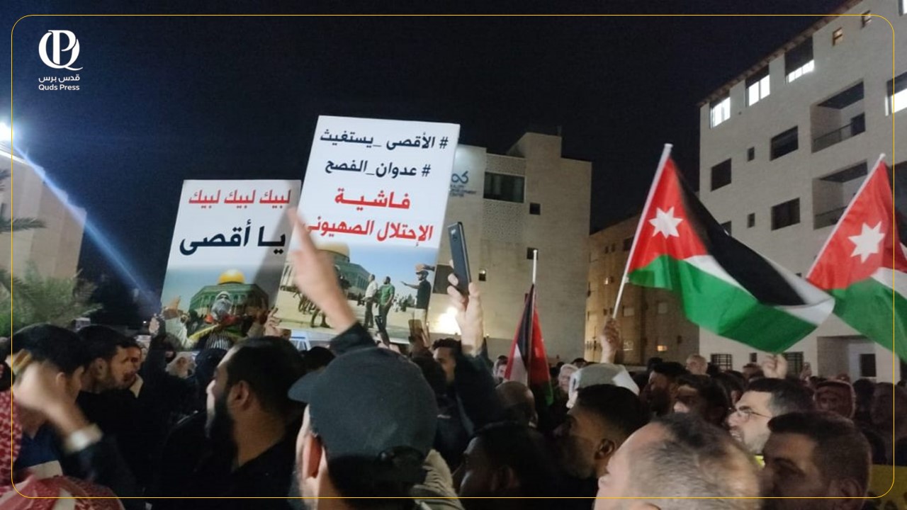 عاجل / حشود غاضبة بالقرب من سفارة اسرائيل بالعاصمة عمان