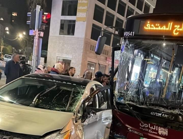 حادث تصادم بين الباص السريع ومركبة خاصة