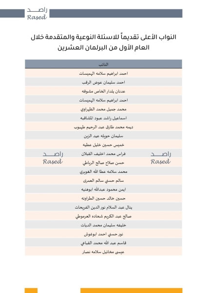 راصد: 20 نائباً قدموا 61٪ من الأسئلة النوعية والمتقدمة.