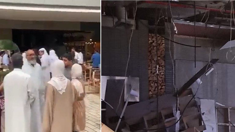الكويت / انهيار سقف مطعم على رؤوس الزبائن في أشهر مركز تجاري (فيديو)