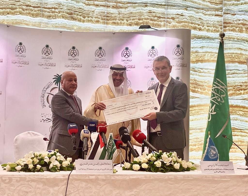 السديري يسلم شيك بقيمة 27 مليون دولار لوكالة الأمم المتحدة لإغاثة وتشغيل اللاجئين الفلسطينيين في الشرق الأدنى (الأونروا)