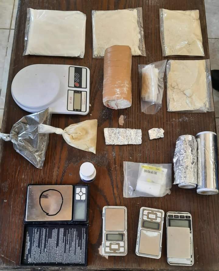 مكافحة المخدرات تلقي القبض على تاجرَي مخدرات ، وتضبط بحوزتهما كيلو غرام من مادة الهيروين وكيلو غرام من مادة الكريستال المخدرة