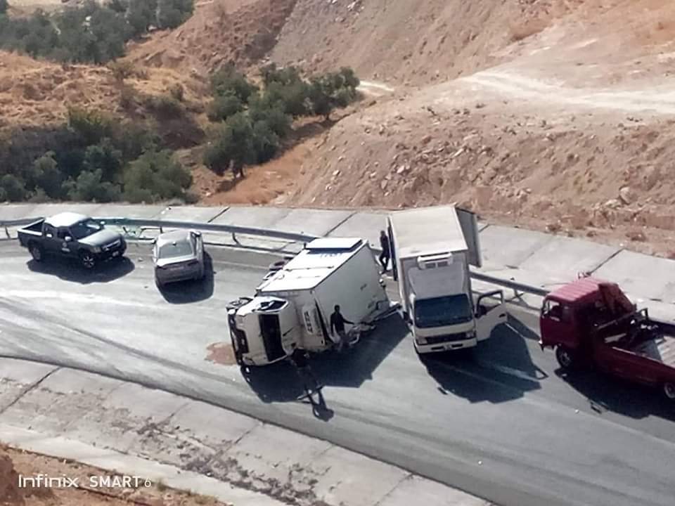 الأشغال: اغلاق مسرب من طريق المطار اثر تدهور مركبة شحن