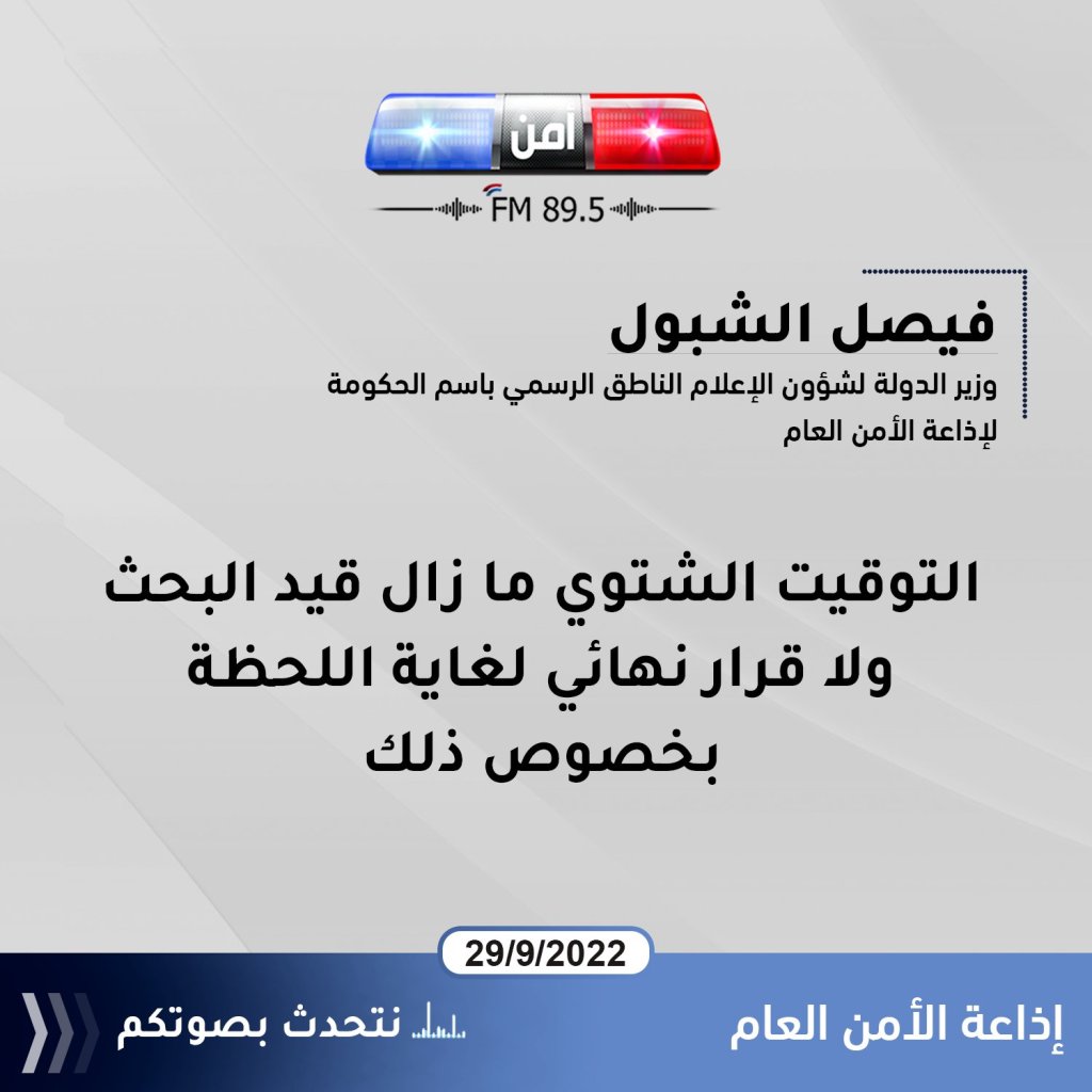 الشبول لإذاعة الأمن العام: التوقيت الشتوي ما زال قيد البحث ولا قرار نهائي لغاية اللحظة