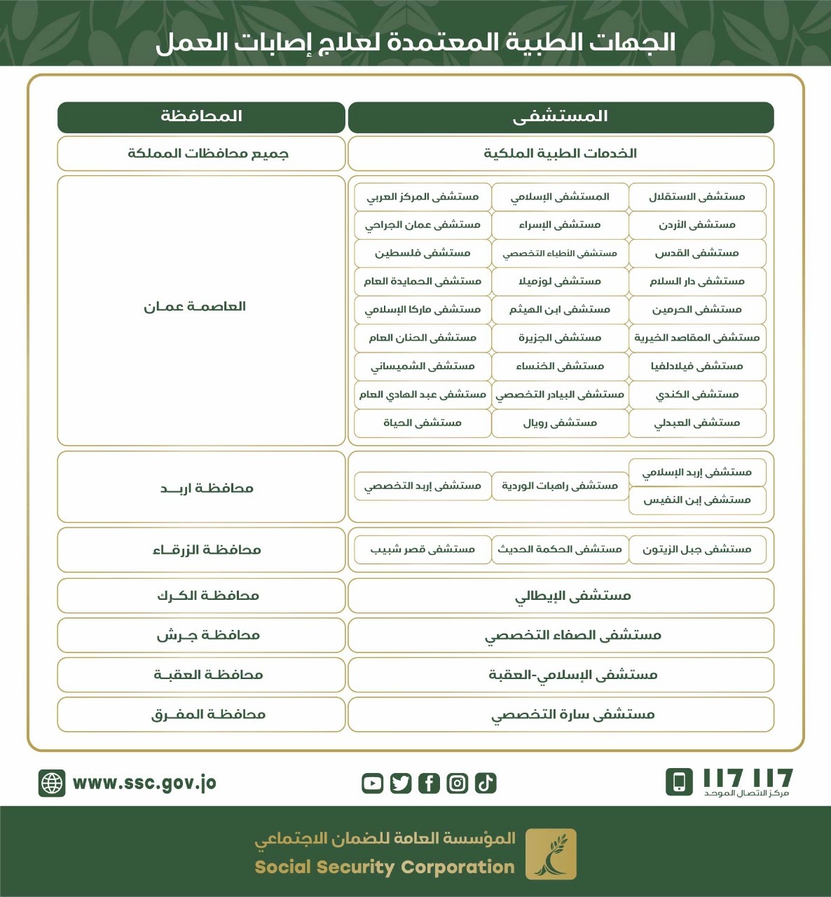 مؤسسة الضمان تعتمد مستشفى الحياة في قائمة الجهات الطبية المعتمدة للعلاج الفوري لإصابات العمل
