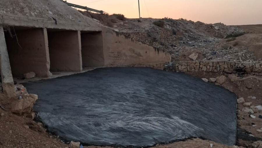 بلدية الرمثا تعالج حفرة على طريق سد البويضة
