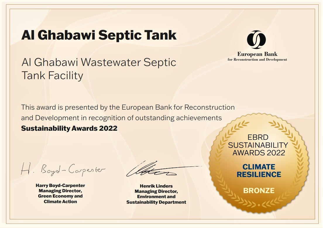 سلطة المياه تحصل على جائزة عالمية لمشروع محطة الغباوي للصرف الصحي