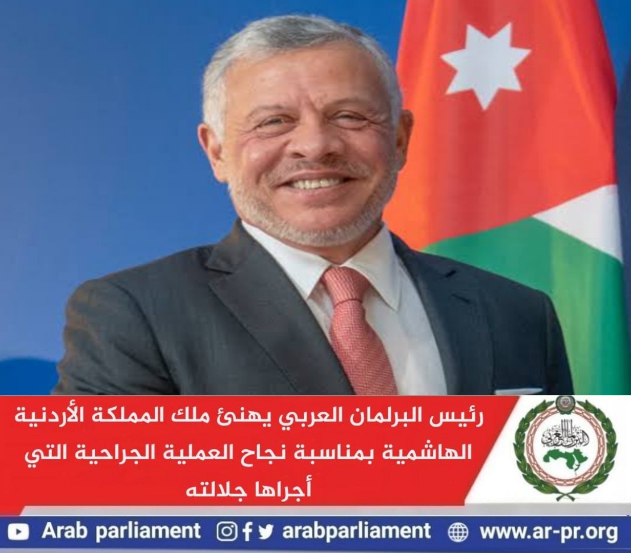 رئيس البرلمان العربي يهنئ جلالة الملك بمناسبة نجاح العملية الجراحية التي أجراها جلالته