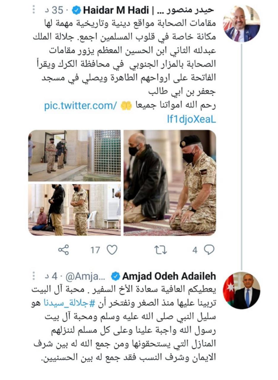 السفير العراقي ينشر تغريده عن زيارة الملك لمقامات الصحابه والعضايله يرد