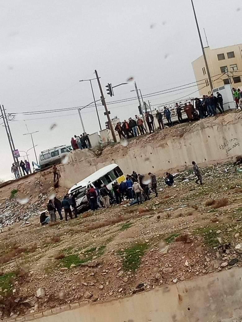 أخبار الاردن: تدهور باص خط على طريق شارع 100 (فيديو)