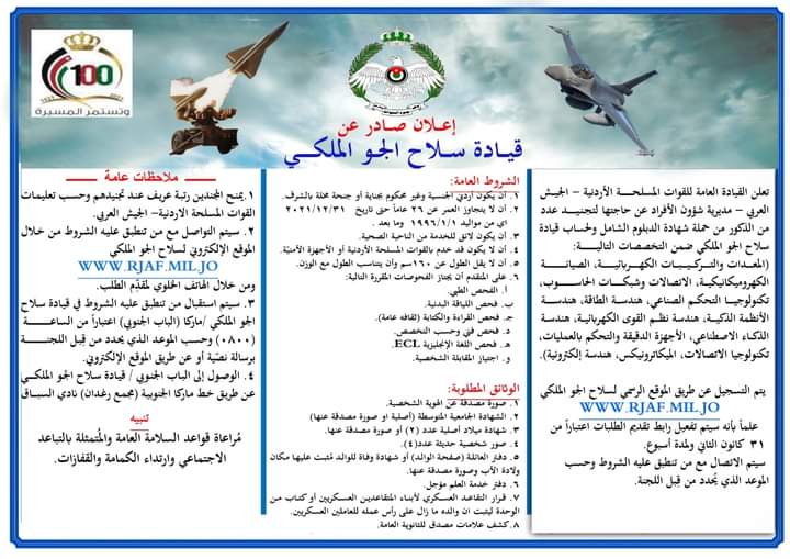 أخبار الاردن:إعلان صادر عن قيادة سلاح الجو الملكي